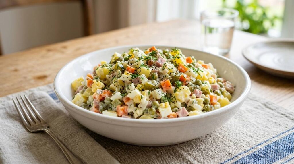 ロシア風ポテトサラダとは何かを知りたい方に向けて オリヴィエサラダの歴史や具材の特徴 味付けの基本を分かりやすく紹介します。食感の魅力や保存のコツ 注意点まで知って 本格的に楽しみたい方は今すぐチェックしてください。 -
