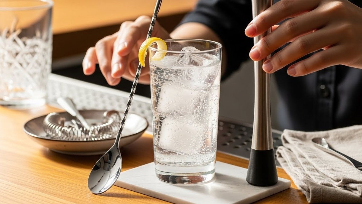また、氷が大きめなら回転はゆっくり、細かい氷ならやや短時間で済ませるなど氷の状態に合わせて調整するとよいです。グラスの底近くをやさしく流すイメージで回すと炭酸を残せます。