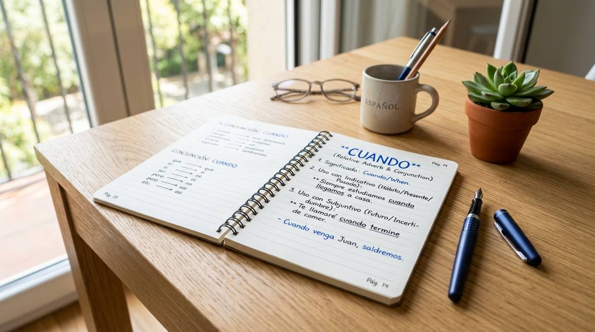スペイン語のcuandoは、2つの出来事をつなぐ「接着剤」のような役割を果たします。日本語の「~するとき」に相当し、ある動作がいつ行われるのかという時間的な背景を説明するために欠かせません。